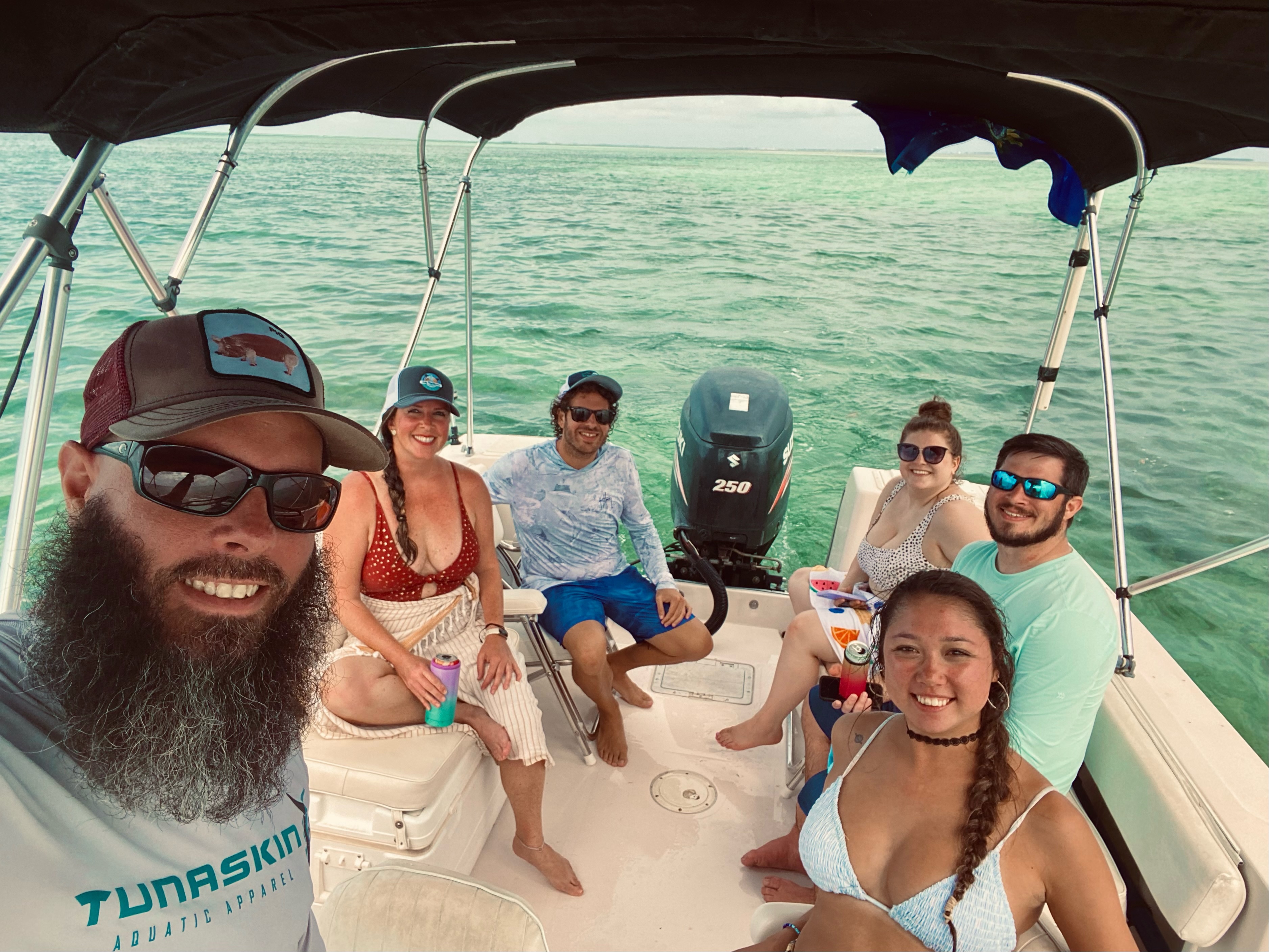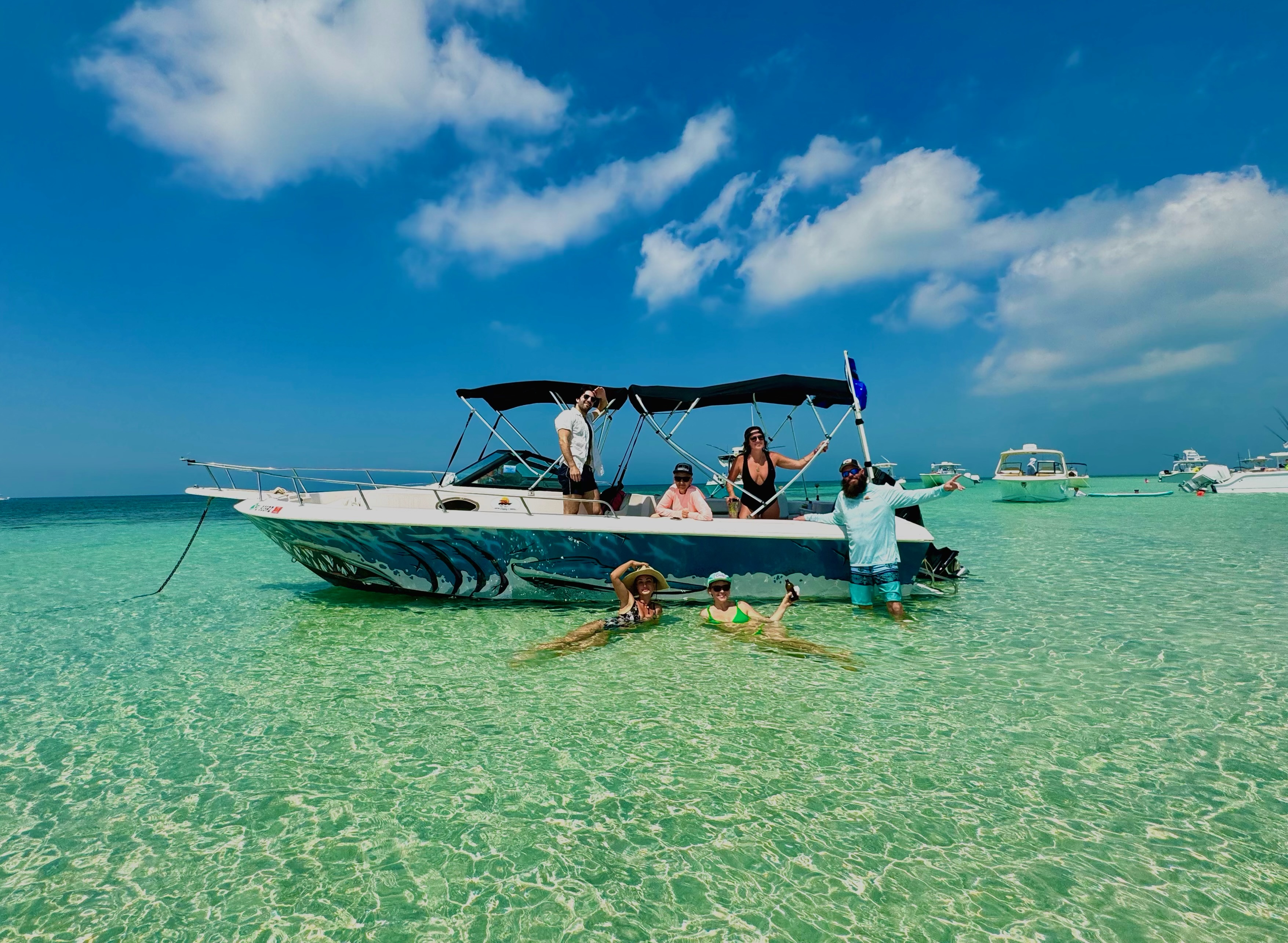 Our 23 foot Pro Line Cuddy Cabin Walkaround has everything you need to make your trip as comfortable as possible. There are 2 large coolers on board to keep your drinks and food cold as well as a cabin to keep your personal items dry. Two bimini tops provide a tremendous amount of shade to protect you from the tropical sun. We have all the snorkeling and sandbar gear you would need to perfect the day.
